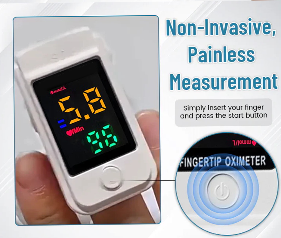 Simply insert your finger and press the start button — it’s completely non-invasive and painless. This makes it ideal for seniors to monitor their blood sugar at home at any time. It’s incredibly convenient for both daily health monitoring and routine checkups.
